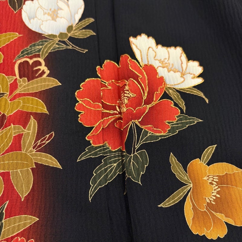 【振袖】 黒系 黒 秀品 B 約160cm~約169cm 裄丈69cm以上 (L)size 袖丈91cm以上 7990-9980 二万以下
