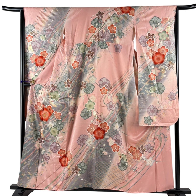 【着物ランク】秀品 【素材】正絹 【身丈】約159cm 【裄丈】約65cm 【袖丈】約102cm 【袖幅】約34cm 【前幅】約24cm 【後幅】約30cm 【サイズ】M 【着物仕立て】袷 【着用時期】10~5月 【状態ランク】ランクB 【着物着用シーン】成人式、謝恩会