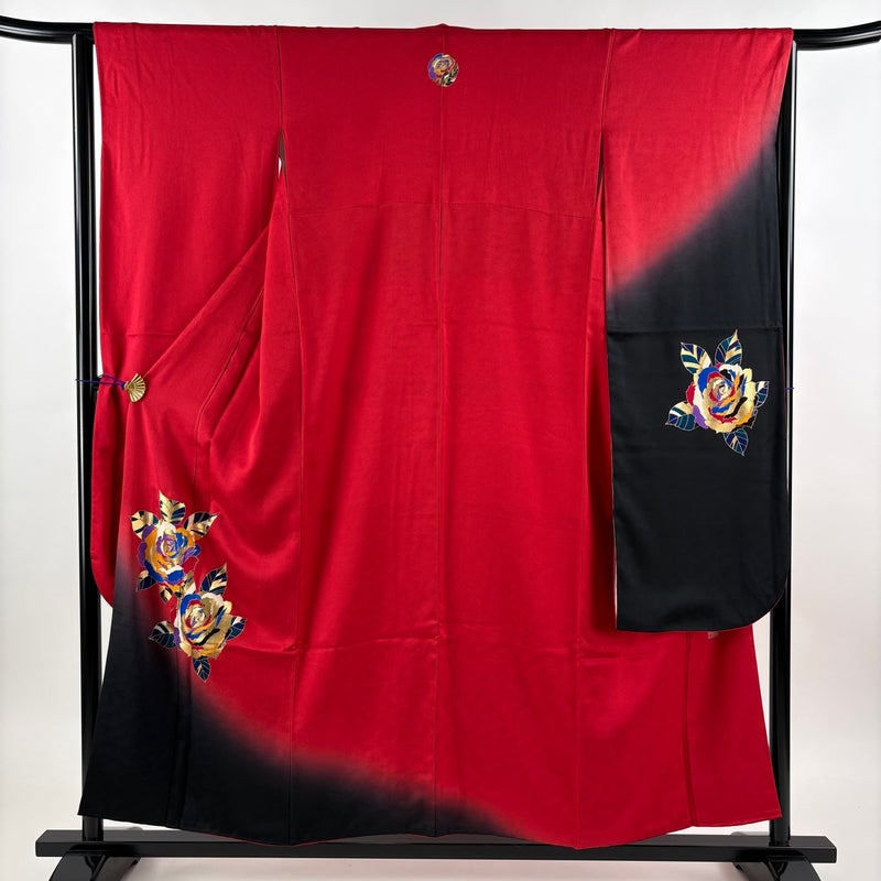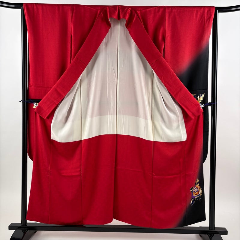 【振袖】 赤系 赤 名品 B 約150cm~約159cm 裄丈63cm-64cm (M)size 袖丈91cm以上 9990-29990 二万以下