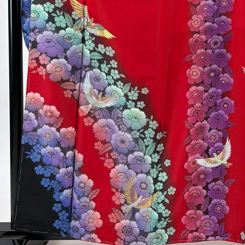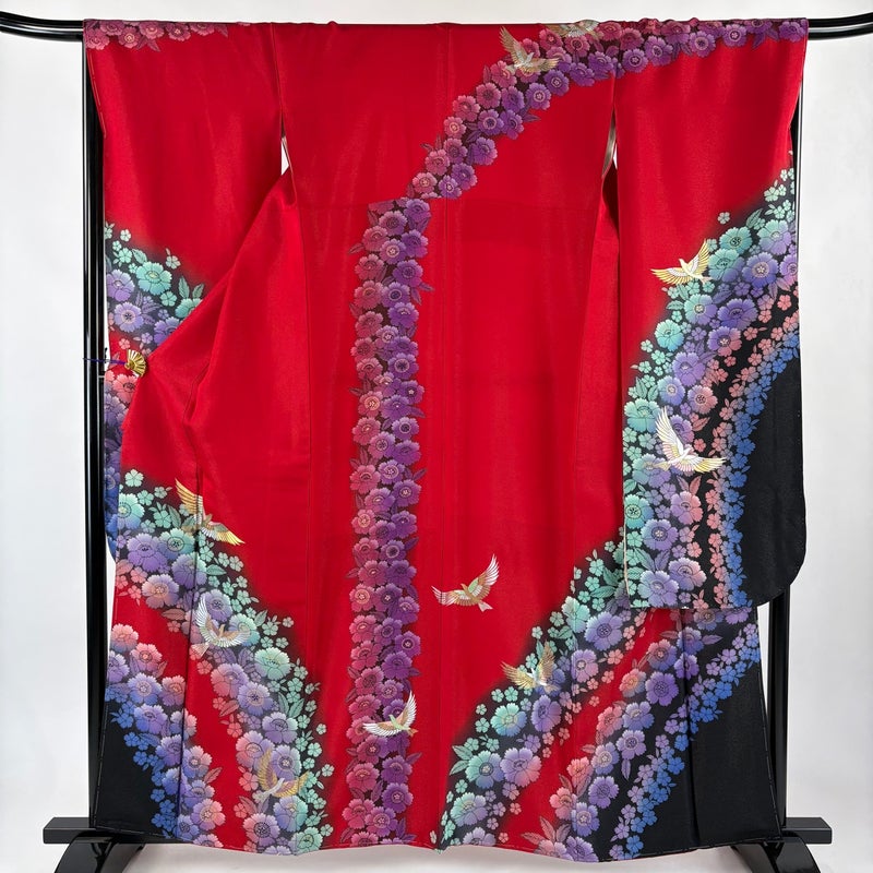 【振袖】 赤系 赤 名品 B 約150cm~約159cm 裄丈69cm以上 (L)size 袖丈91cm以上 9990-29990 二万以下