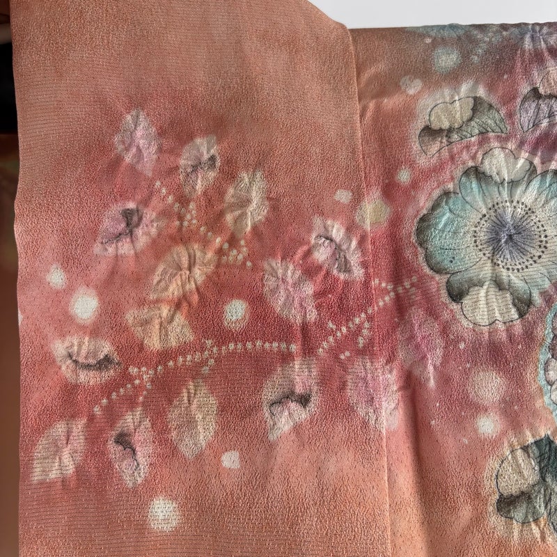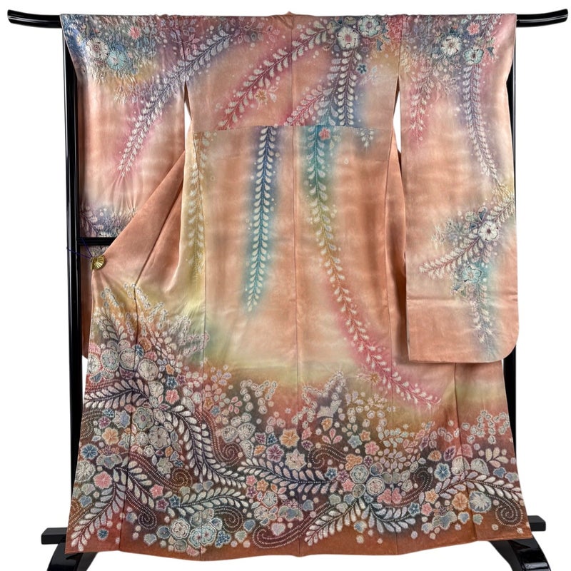 【振袖】 赤系 サーモンピンク 逸品 A 約160cm~約169cm 裄丈67cm-68cm (M)size 袖丈91cm以上 30000- 美品 五万以下