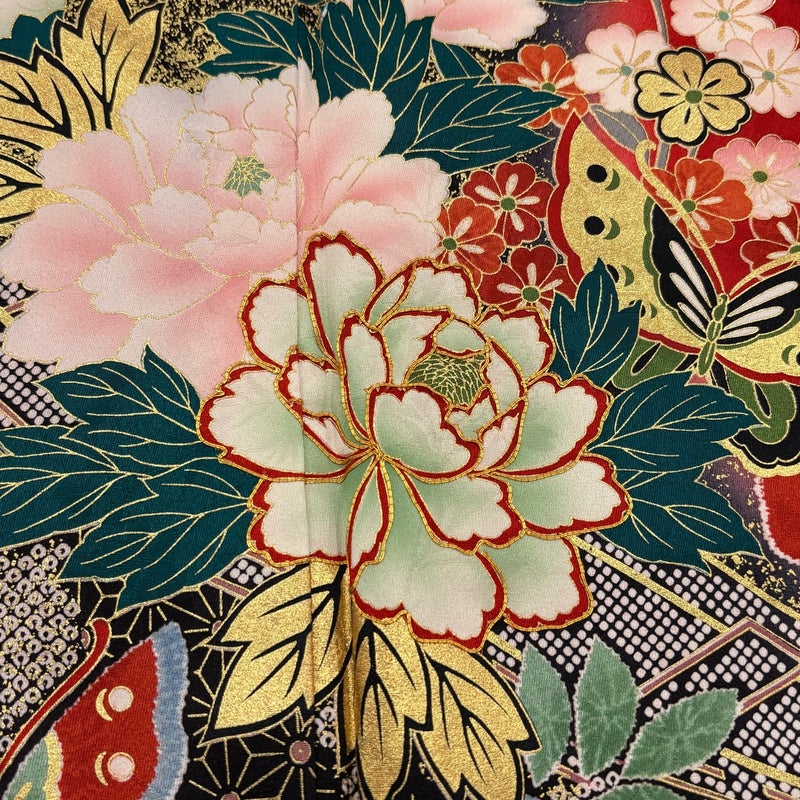 【着物ランク】秀品 【素材】正絹 【身丈】約166cm 【裄丈】約68cm 【袖丈】約112cm 【袖幅】約34.5cm 【前幅】約23cm 【後幅】約30.5cm 【サイズ】L 【着物仕立て】袷 【着用時期】10~5月 【状態ランク】ランクA 【着物着用シーン】成人式、謝恩会