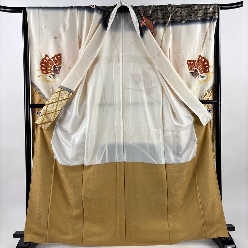 【振袖】 白系 クリーム 秀品 B 約160cm~約169cm 裄丈65cm (M)size 袖丈91cm以上 7990-9980 二万以下
