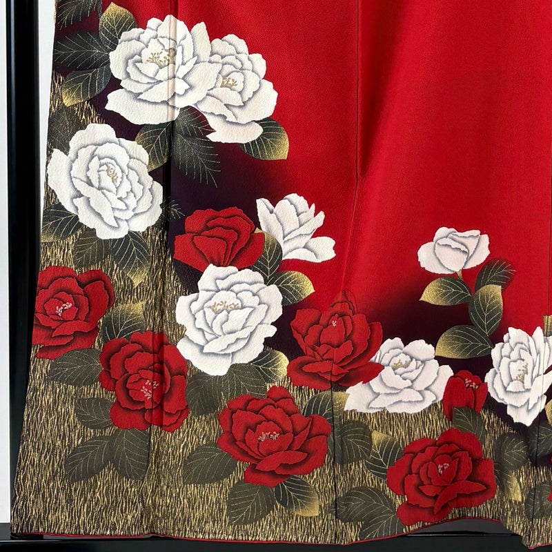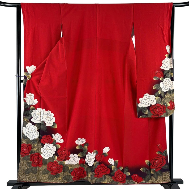 【振袖】 赤系 赤 秀品 B 約150cm~約159cm 裄丈63cm-64cm (M)size 袖丈91cm以上 7990-9980 二万以下