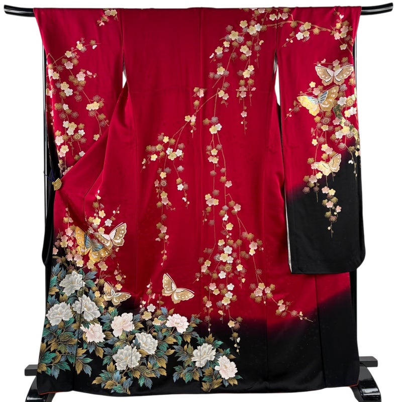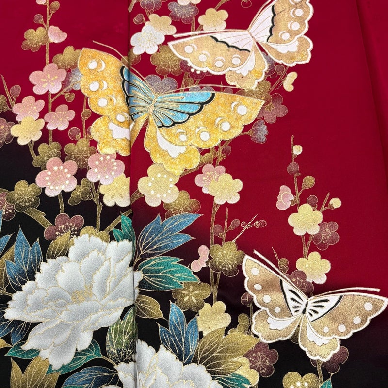 【振袖】 赤系 赤 秀品 B 約160cm~約169cm 裄丈69cm以上 (L)size 袖丈91cm以上 7990-9980 二万以下