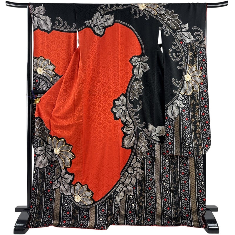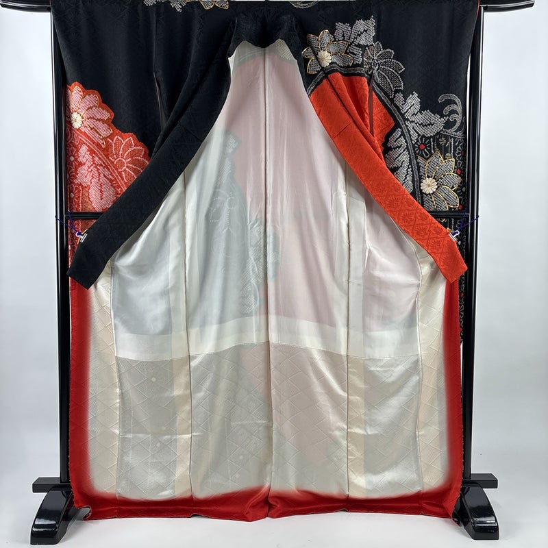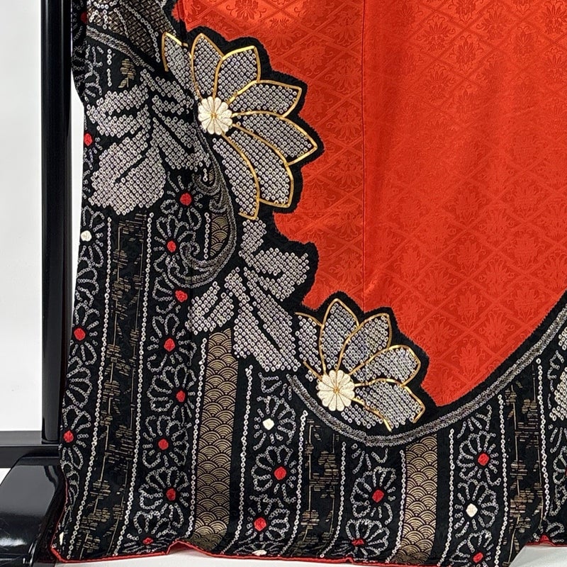 【振袖】 赤系 朱色 秀品 B 約170cm~約179cm 裄丈66cm (M)size 袖丈91cm以上 7990-9980 二万以下