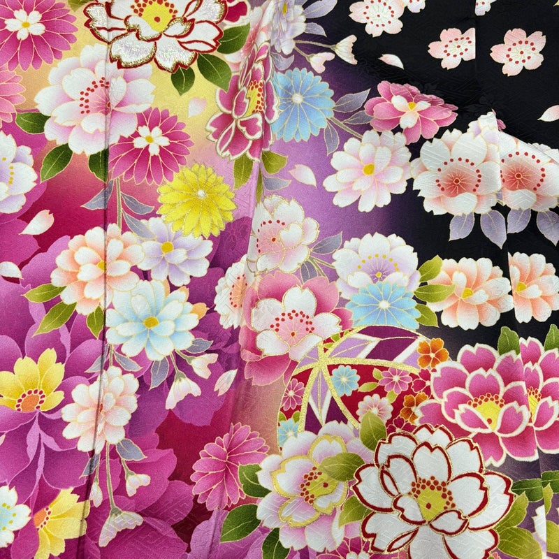 【振袖】 黒系 黒 名品 A 約160cm~約169cm 裄丈67cm-68cm (M)size 袖丈91cm以上 9990-29990 美品 二万以下