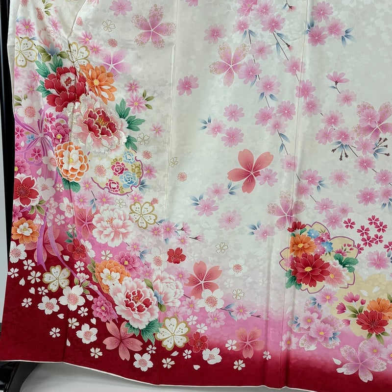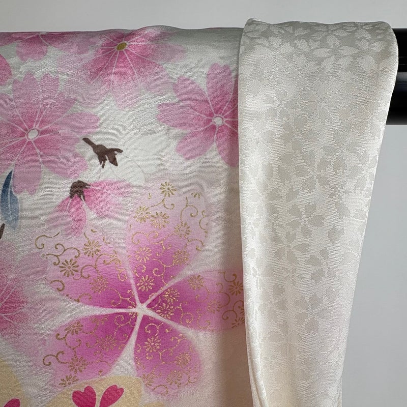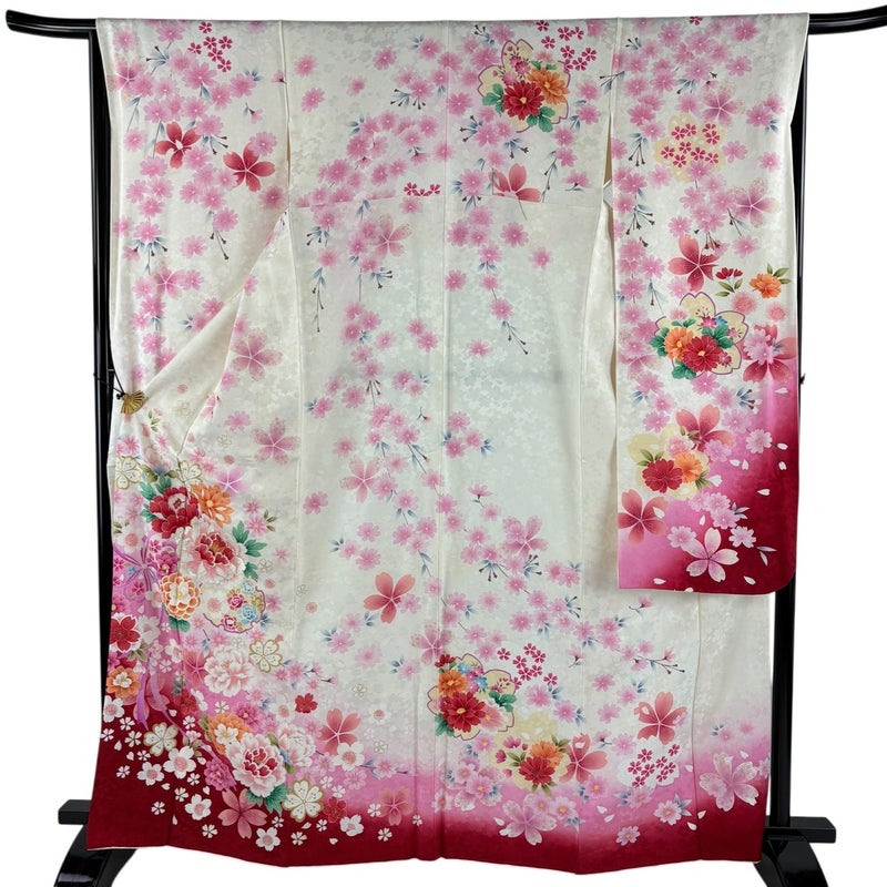 【着物ランク】逸品 【素材】正絹 【身丈】約165cm 【裄丈】約65.5cm 【袖丈】約108cm 【袖幅】約35cm 【前幅】約24cm 【後幅】約30cm 【サイズ】M 【着物仕立て】袷 【着用時期】10~5月 【状態ランク】ランクA 【着物着用シーン】成人式、謝恩会