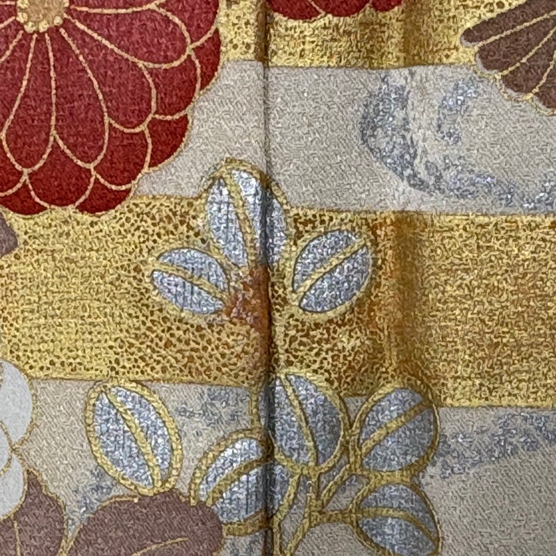 未婚女性の第一礼装としてお使いいただける振袖でございます。 お好みの帯や小物と合わせて晴れの日に相応しい華やかな装いにいかがでしょうか。 ※身丈・裄丈の縫込みの長さは測っておりません。 表地所々にヤケ、後身頃にシミ、衿周りに汚れ、表地所々に金銀彩の剥がれがございます。 リユース品としては良い状態で、まだまだご活用頂けると思われます。 ※なお、厳しく商品の状態確認を行っておりますが、記載の汚れ以外にも見落とし箇所がある可能性がある旨ご了承いただけますと幸いです。 沢山の商品の中からご覧いただき誠にありがとうございます。