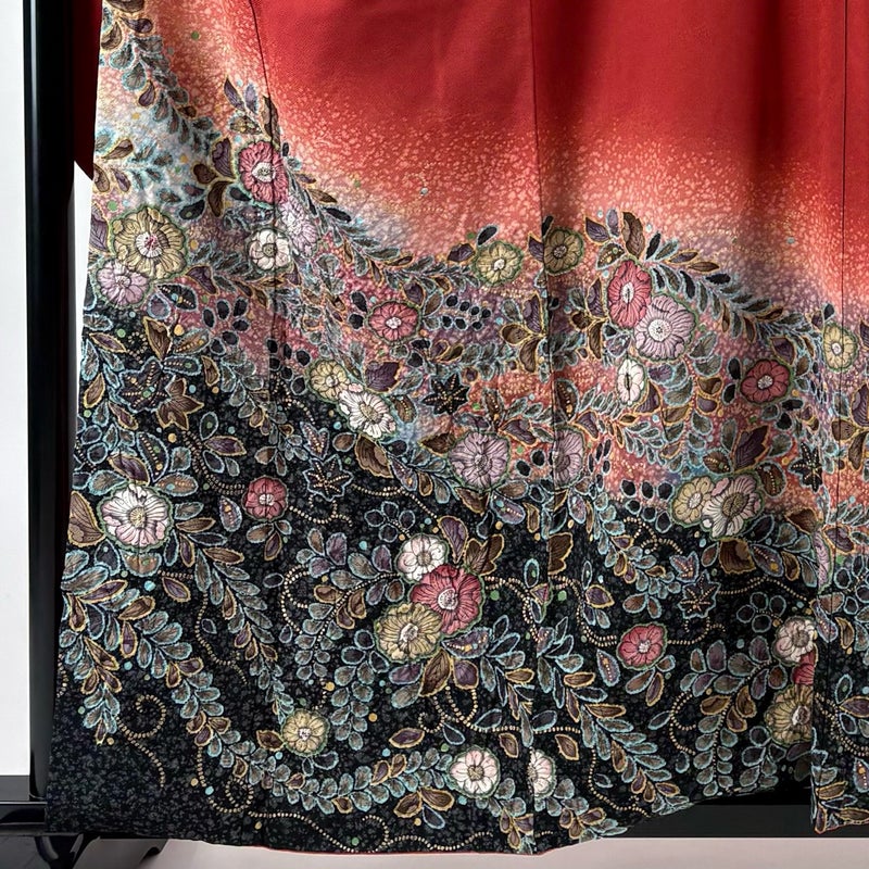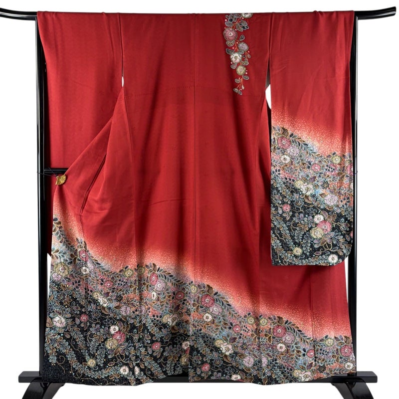 【振袖】 赤系 赤 秀品 B 約160cm~約169cm 裄丈65cm (M)size 袖丈91cm以上 4000-7980 二万以下