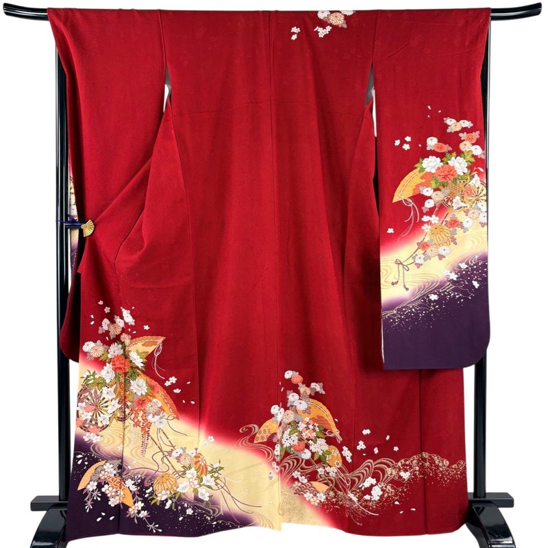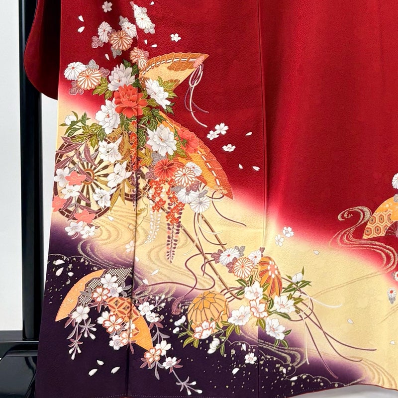 【振袖】 赤系 赤 秀品 B 約160cm~約169cm 裄丈69cm以上 (L)size 袖丈91cm以上 7990-9980 二万以下