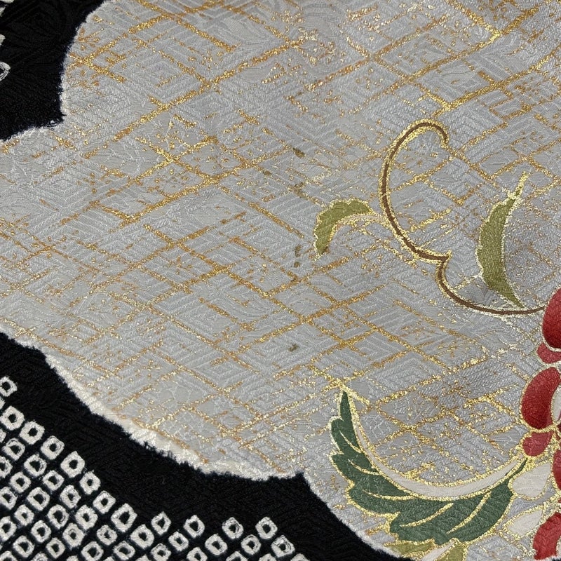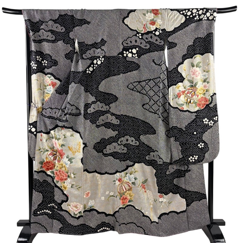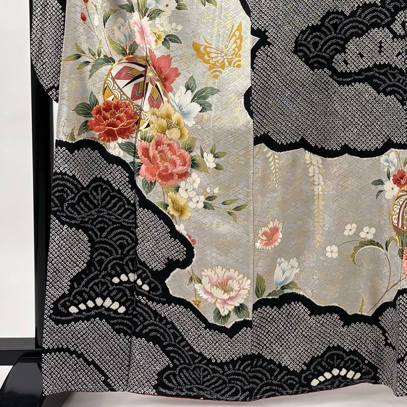 【振袖】 黒系 黒 名品 B 約160cm~約169cm 裄丈69cm以上 (L)size 袖丈91cm以上 9990-29990 二万以下