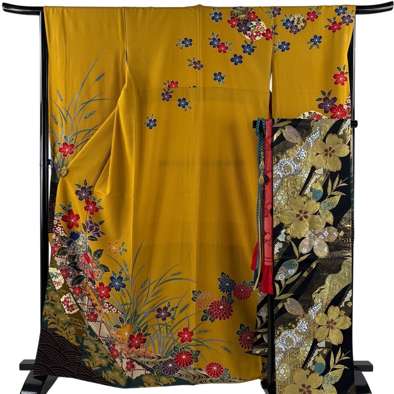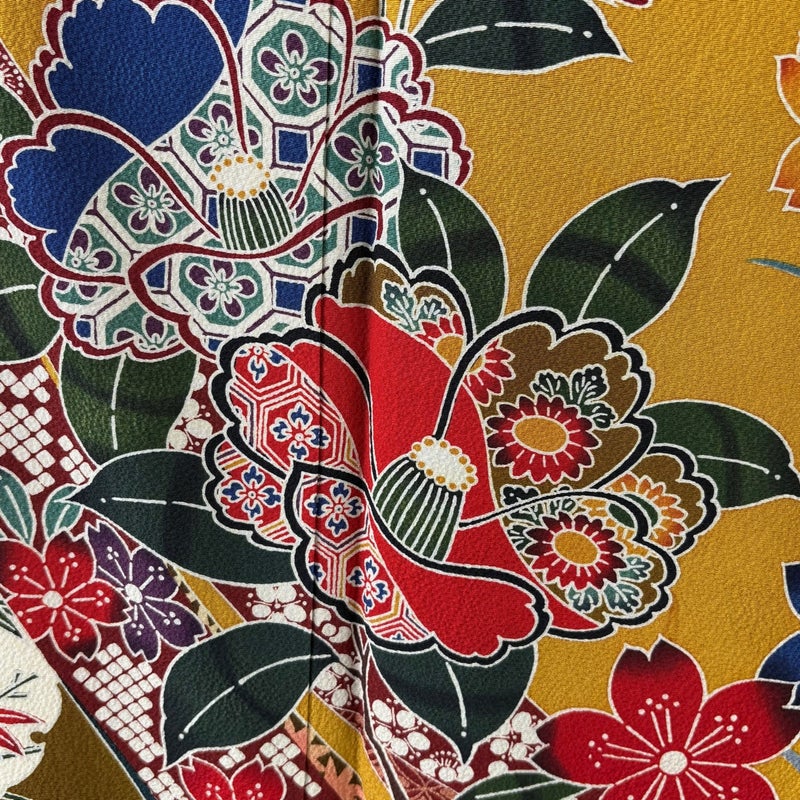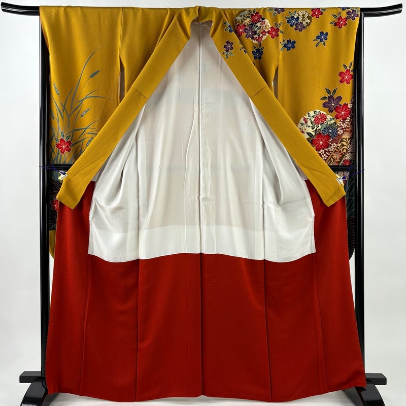 【振袖】 黄色系 山吹色 秀品 B 約160cm~約169cm 裄丈66cm (M)size 袖丈91cm以上 9990-29990 五万以下