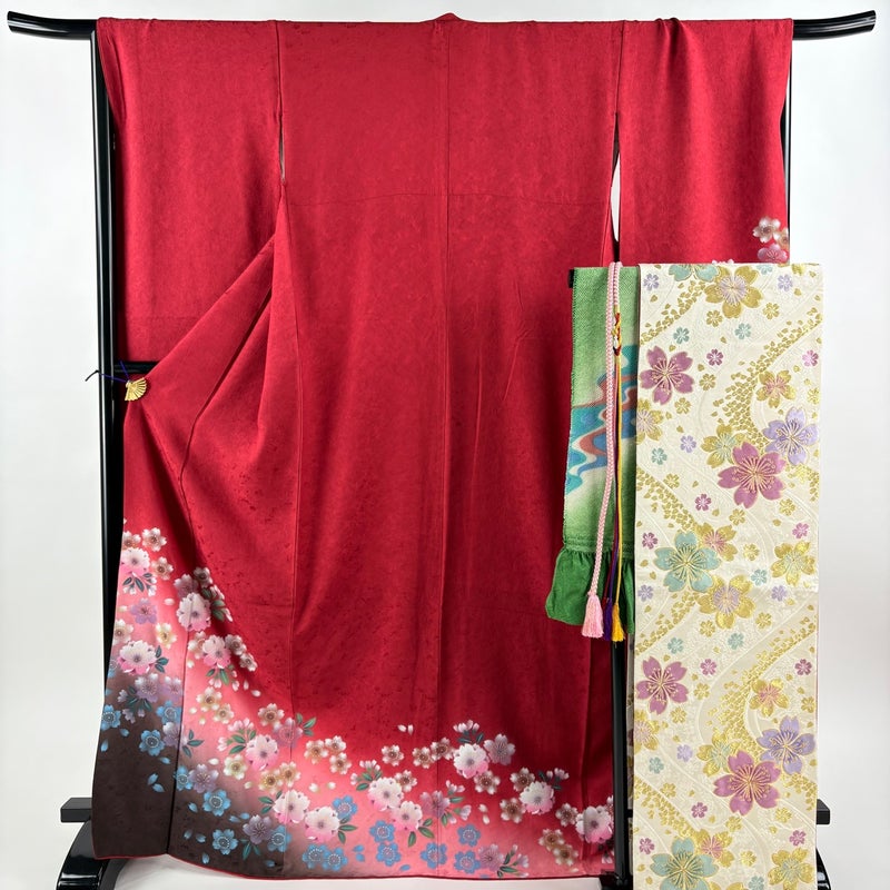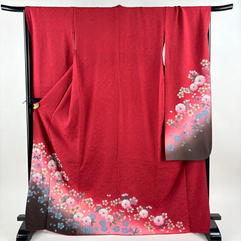 【振袖】 赤系 赤 秀品 A 約170cm~約179cm 裄丈67cm-68cm (M)size 袖丈91cm以上 9990-29990 美品 五万以下