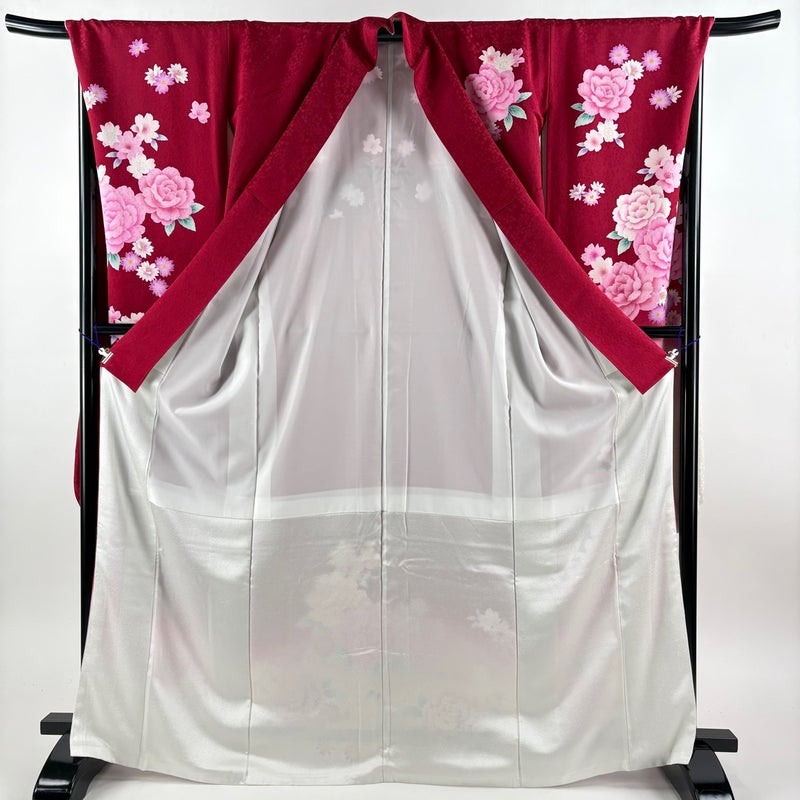 【振袖】 赤系 えんじ色 秀品 A 約160cm~約169cm 裄丈69cm以上 (L)size 袖丈91cm以上 9990-29990 美品 五万以下
