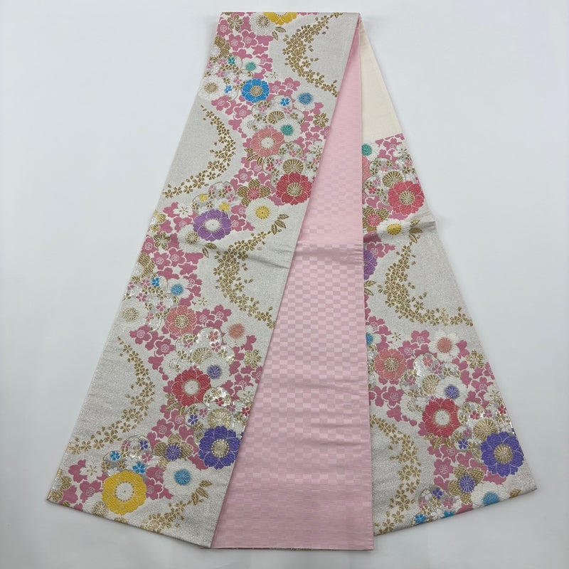 【着物ランク】秀品 【素材】正絹 【身丈】約169cm 【裄丈】約70.5cm 【袖丈】約114cm 【袖幅】約35.5cm 【前幅】約24cm 【後幅】約29.5cm 【サイズ】L 【着物仕立て】袷 【着用時期】10~5月 【帯丈2】約458cm 【帯幅2】約30.5cm 【状態ランク】ランクA 【着物着用シーン】成人式、謝恩会