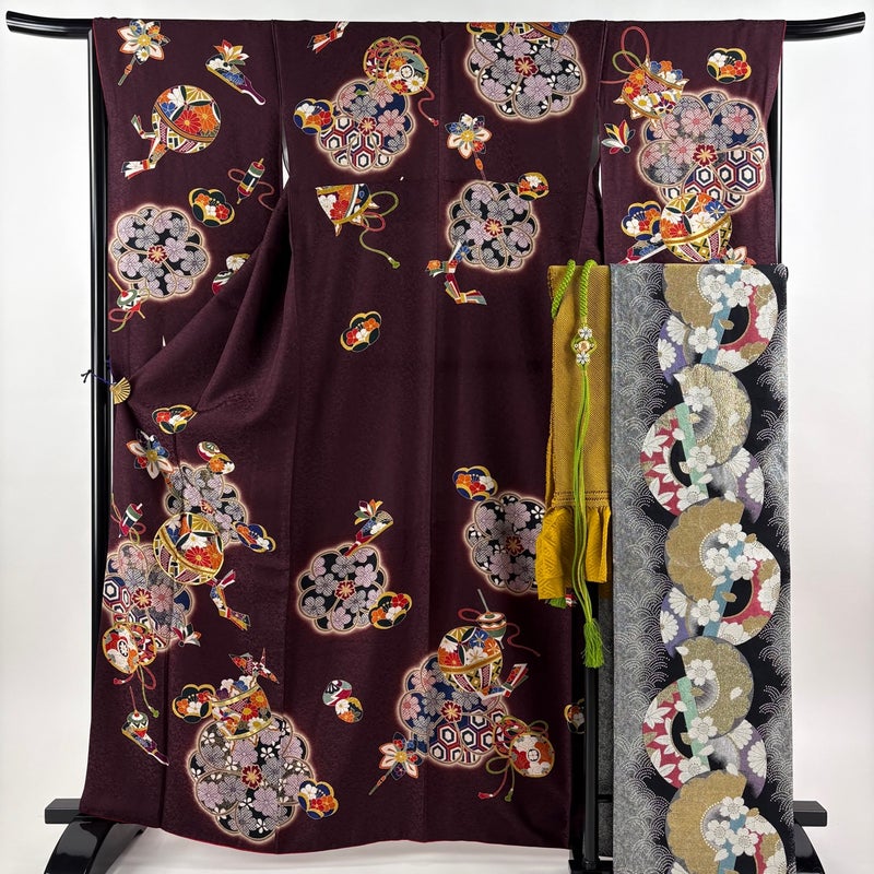 【振袖】 茶系 茶紫 秀品 B 約160cm~約169cm 裄丈65cm (M)size 袖丈91cm以上 9990-29990 五万以下