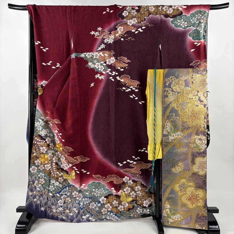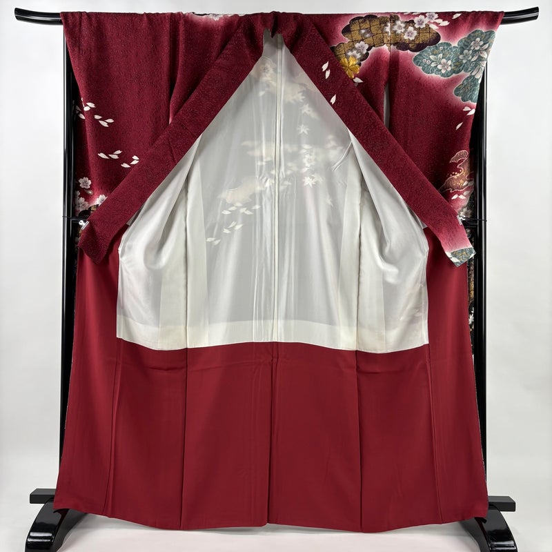【振袖】 赤系 えんじ色 名品 B 約160cm~約169cm 裄丈69cm以上 (L)size 袖丈91cm以上 9990-29990 五万以下