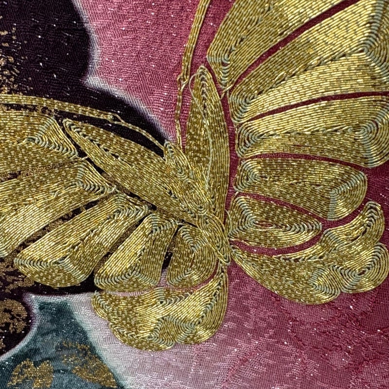 【着物ランク】名品 【素材】正絹 【身丈】約166cm 【裄丈】約69.5cm 【袖丈】約114.5cm 【袖幅】約36cm 【前幅】約25cm 【後幅】約30cm 【サイズ】L 【着物仕立て】袷 【着用時期】10~5月 【帯丈2】約444cm 【帯幅2】約30cm 【状態ランク】ランクB 【着物着用シーン】成人式、謝恩会