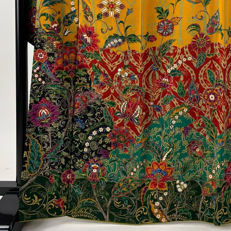 【着物ランク】秀品 【素材】正絹 【身丈】約166cm 【裄丈】約68.5cm 【袖丈】約110cm 【袖幅】約35cm 【前幅】約24cm 【後幅】約29cm 【サイズ】L 【着物仕立て】袷 【着用時期】10~5月 【帯丈2】約440cm 【帯幅2】約31cm 【状態ランク】ランクA 【着物着用シーン】成人式、謝恩会