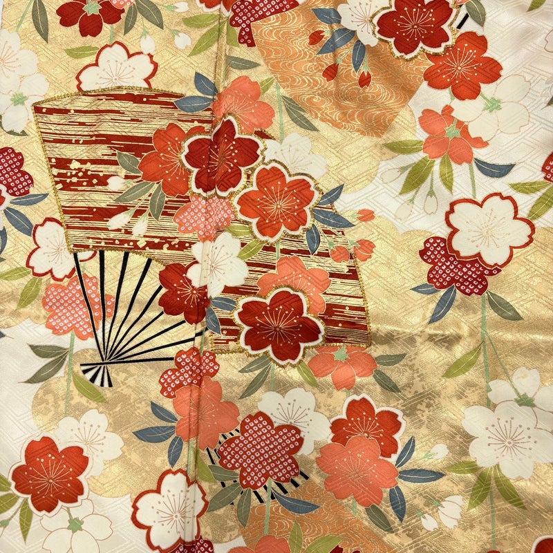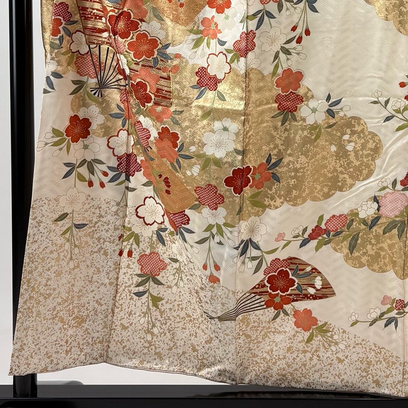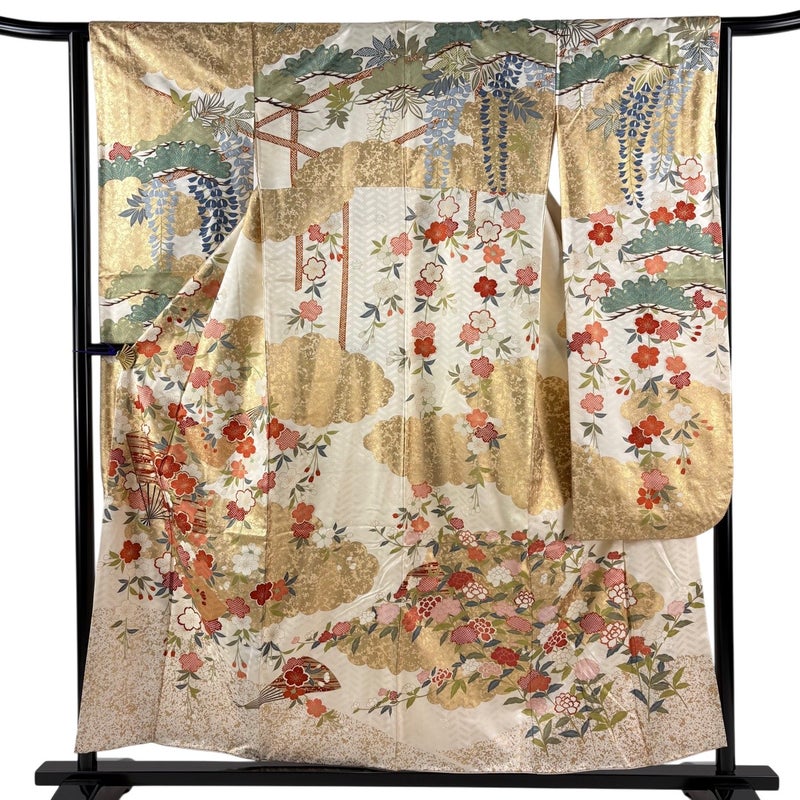 【振袖】 白系 クリーム 秀品 C 約150cm~約159cm 裄丈63cm-64cm (M)size 袖丈91cm以上 7990-9980 二万以下