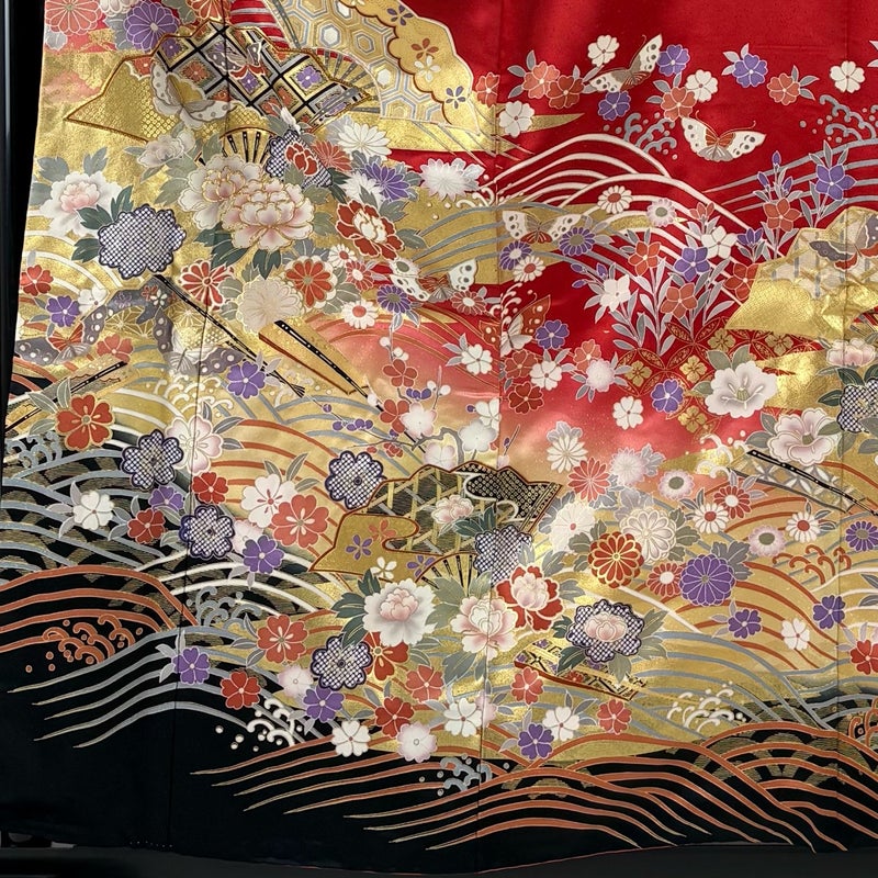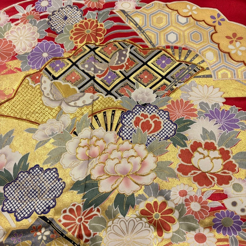 未婚女性の第一礼装としてお使いいただける振袖でございます。 お好みの帯や小物と合わせて晴れの日に相応しい華やかな装いにいかがでしょうか。 ※身丈・裄丈の縫込みの長さは測っておりません。 衿周りや両袖口中に汚れ、表地所々にシワ、右後袖付けに縫い目のゆるみ、表地所々に金彩の変色がございます。 裏地所々にシワがございます。 リユース品としては良い状態で、まだまだご活用頂けると思われます。 ※なお、厳しく商品の状態確認を行っておりますが、記載の汚れ以外にも見落とし箇所がある可能性がある旨ご了承いただけますと幸いです。 沢山の商品の中からご覧いただき誠にありがとうございます。 【PR2】