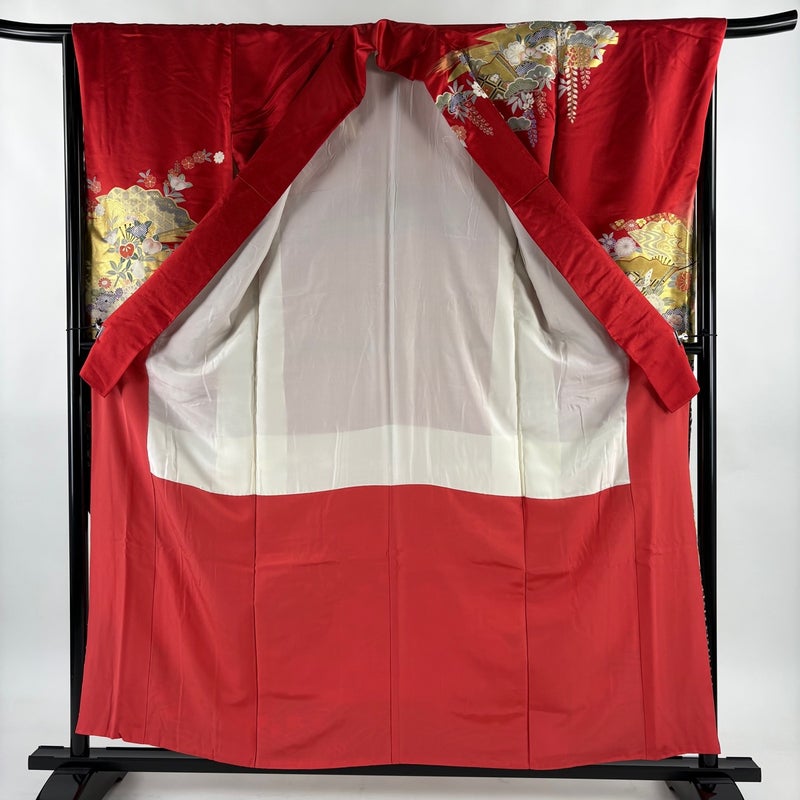 【振袖】 赤系 赤 秀品 B 約150cm~約159cm 裄丈66cm (M)size 袖丈91cm以上 7990-9980 二万以下