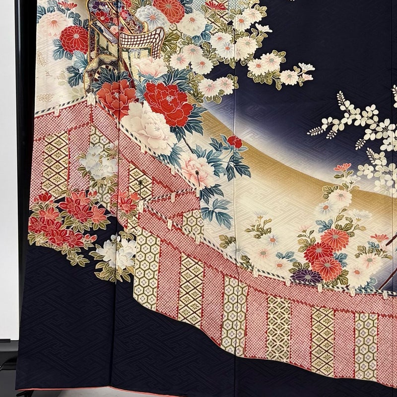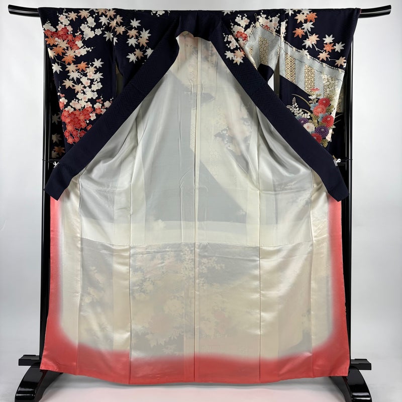 【着物ランク】秀品 【素材】正絹 【身丈】約167cm 【裄丈】約69cm 【袖丈】約113cm 【袖幅】約36cm 【前幅】約23cm 【後幅】約28cm 【サイズ】L 【着物仕立て】袷 【着用時期】10~5月 【状態ランク】ランクB 【着物着用シーン】成人式、謝恩会
