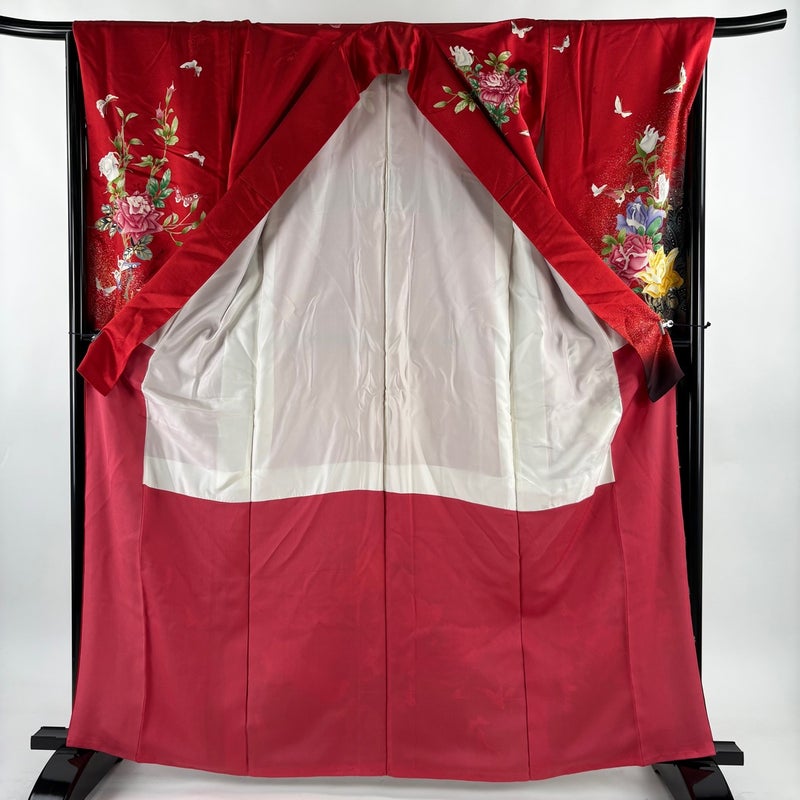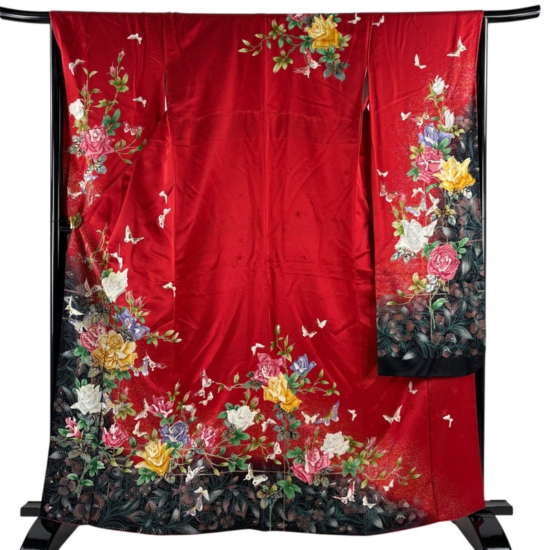 【振袖】 赤系 赤 秀品 B 約160cm~約169cm 裄丈67cm-68cm (M)size 袖丈91cm以上 7990-9980 二万以下