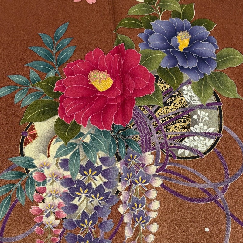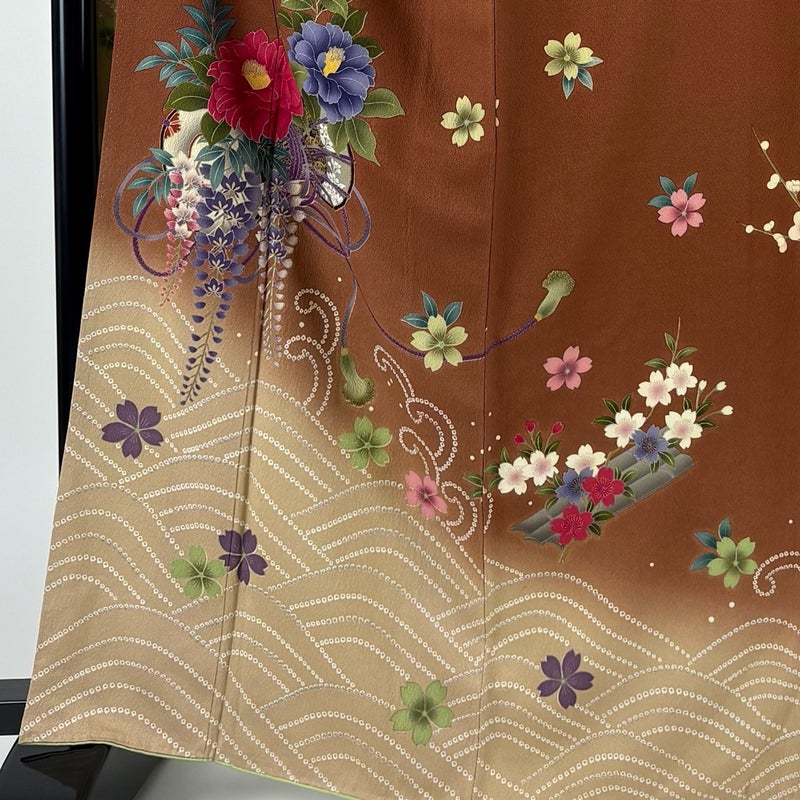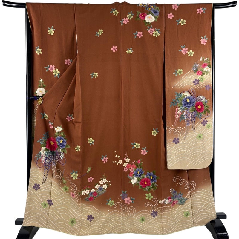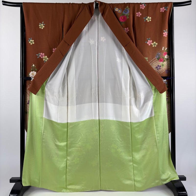 【振袖】 茶系 茶色 秀品 B 約160cm~約169cm 裄丈66cm (M)size 袖丈91cm以上 7990-9980 二万以下