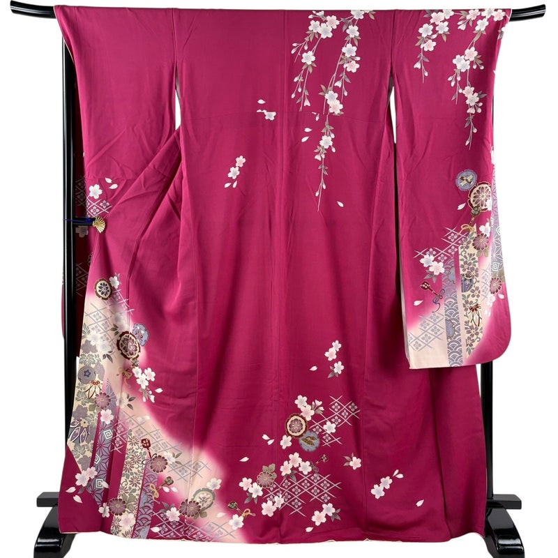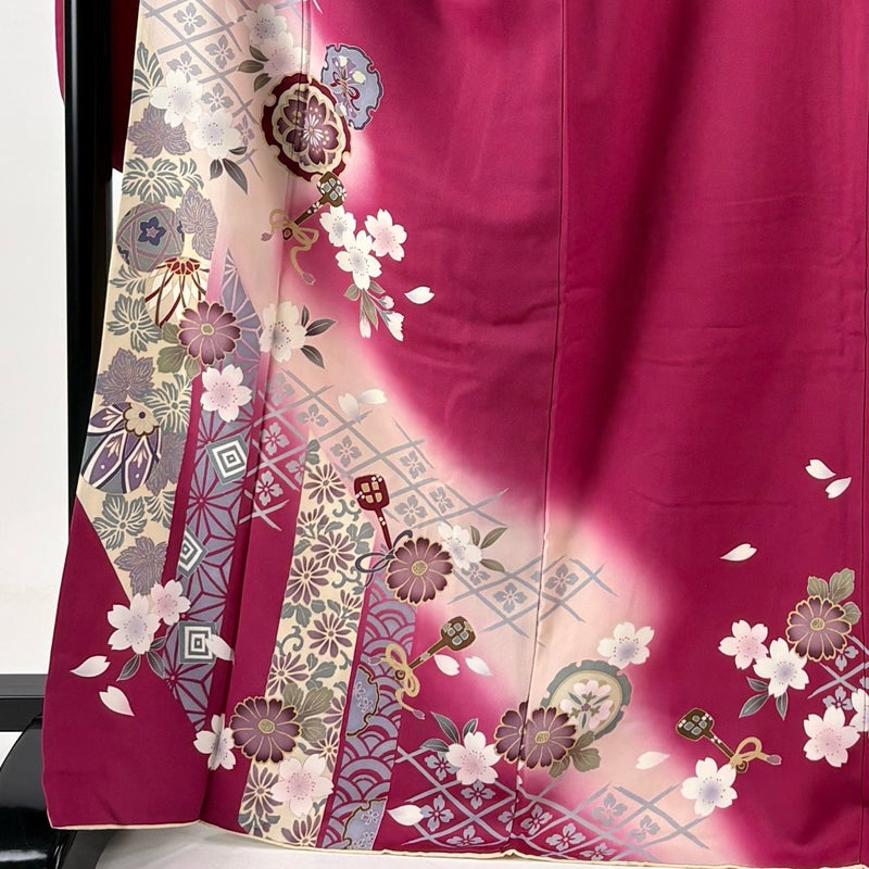 【振袖】 赤系 濃ピンク 秀品 B 約170cm~約179cm 裄丈69cm以上 (L)size 袖丈91cm以上 7990-9980 二万以下