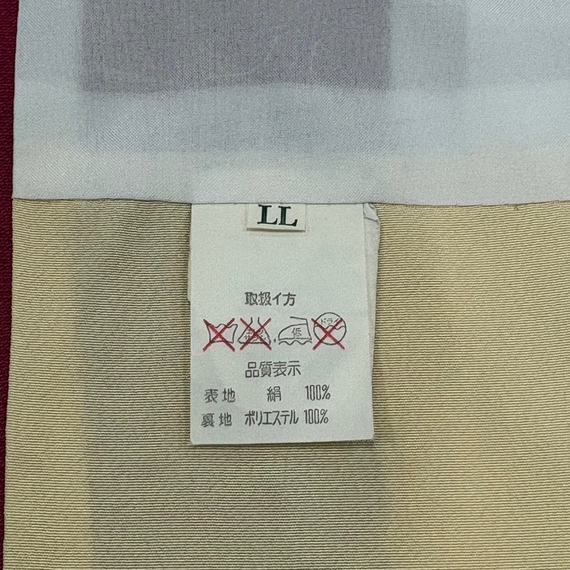 【着物ランク】秀品 【素材】正絹 【身丈】約170cm 【裄丈】約69cm 【袖丈】約112cm 【袖幅】約36cm 【前幅】約26.5cm 【後幅】約30cm 【サイズ】L 【着物仕立て】袷 【着用時期】10~5月 【状態ランク】ランクB 【着物着用シーン】成人式、謝恩会
