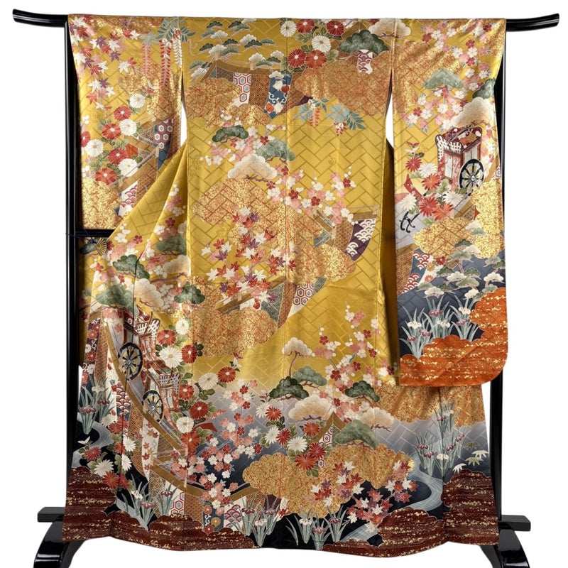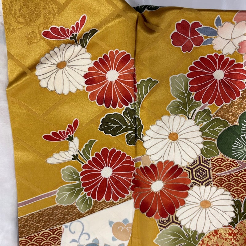 未婚女性の第一礼装としてお使いいただける振袖でございます。 お好みの帯や小物と合わせて晴れの日に相応しい華やかな装いにいかがでしょうか。 ※身丈・裄丈の縫込みの長さは測っておりません。 右後袖にシミ、後身頃に小さなシミ、衿周りや両袖口中に汚れ、右後袖付けにほつれ、表地所々に金彩の変色がございます。 リユース品としては良い状態で、まだまだご活用頂けると思われます。 ※なお、厳しく商品の状態確認を行っておりますが、記載の汚れ以外にも見落とし箇所がある可能性がある旨ご了承いただけますと幸いです。 沢山の商品の中からご覧いただき誠にありがとうございます。 【PR2】