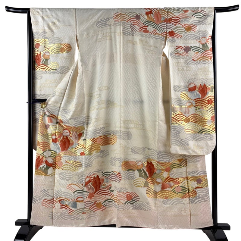 【振袖】 白系 クリーム 秀品 B 約150cm~約159cm 裄丈66cm (M)size 袖丈91cm以上 7990-9980 二万以下