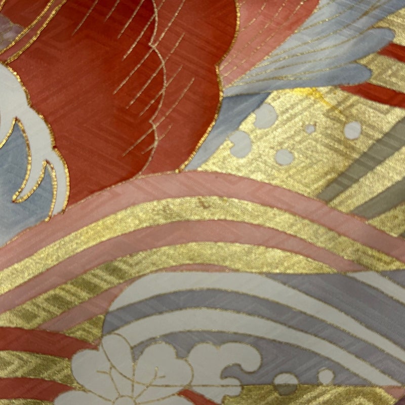 【着物ランク】秀品 【素材】正絹 【身丈】約159.5cm 【裄丈】約66cm 【袖丈】約106cm 【袖幅】約32.5cm 【前幅】約24cm 【後幅】約30cm 【サイズ】M 【着物仕立て】袷 【着用時期】10~5月 【状態ランク】ランクB 【着物着用シーン】成人式、謝恩会