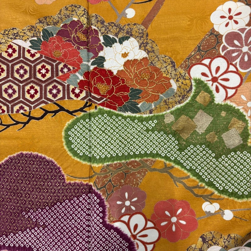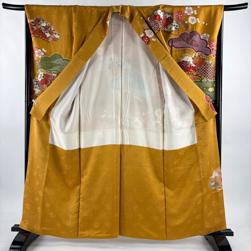 【振袖】 黄色系 山吹色 秀品 B 約160cm~約169cm 裄丈66cm (M)size 袖丈91cm以上 7990-9980 二万以下