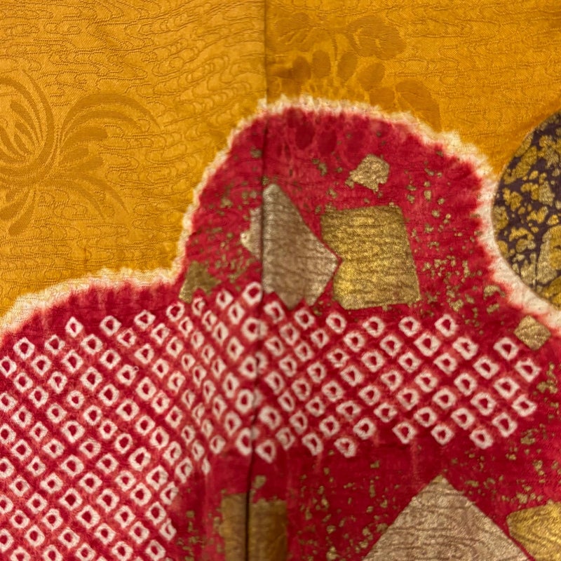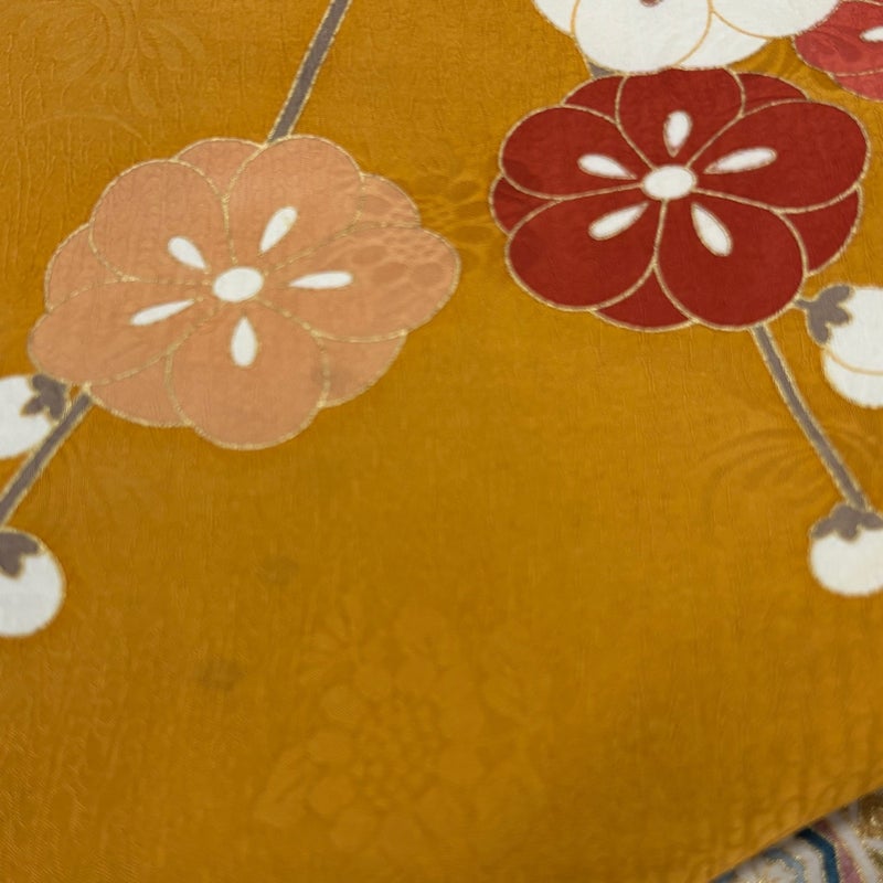 【着物ランク】秀品 【素材】正絹 【身丈】約161cm 【裄丈】約66cm 【袖丈】約111cm 【袖幅】約34cm 【前幅】約26.5cm 【後幅】約33.5cm 【サイズ】M 【着物仕立て】袷 【着用時期】10~5月 【状態ランク】ランクB 【着物着用シーン】成人式、謝恩会