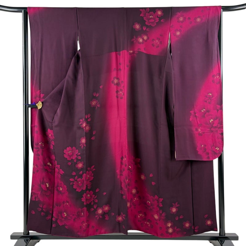 【振袖】 紫系 濃紫 秀品 A 約150cm~約159cm 裄丈63cm-64cm (M)size 袖丈91cm以上 9990-29990 美品 二万以下