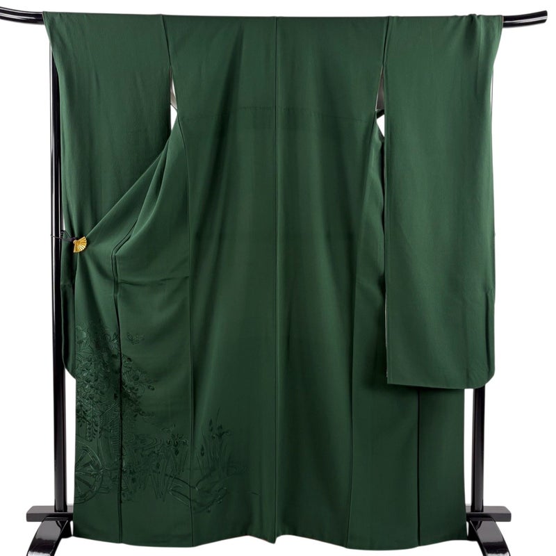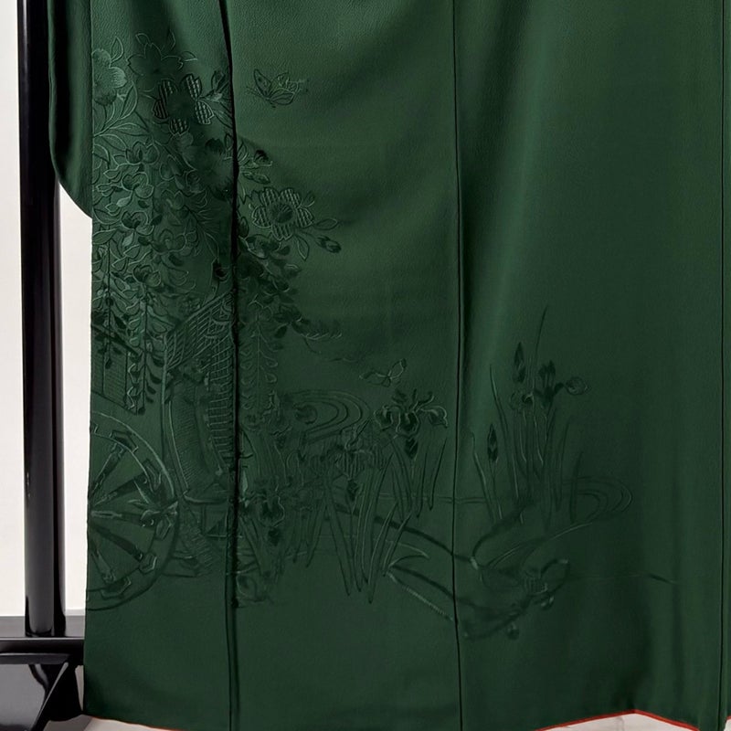 【振袖】 緑系 深緑 秀品 B 約160cm~約169cm 裄丈69cm以上 (L)size 袖丈91cm以上 7990-9980 二万以下
