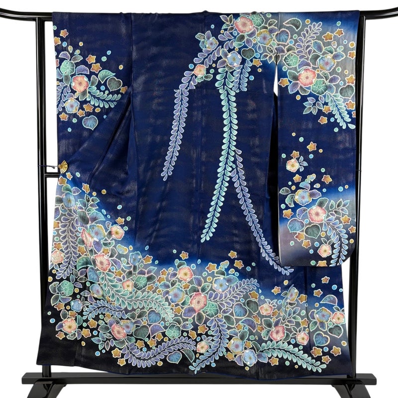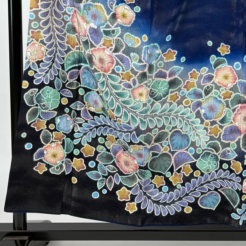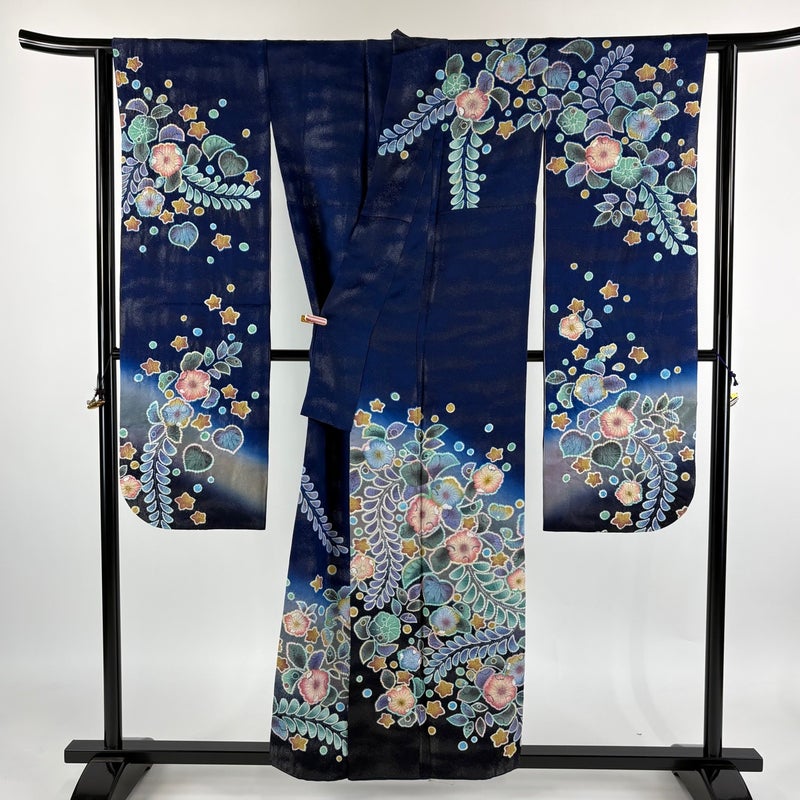 【振袖】 青系 藍色 逸品 B 約150cm~約159cm 裄丈63cm-64cm (S)size 袖丈91cm以上 30000- 五万以下