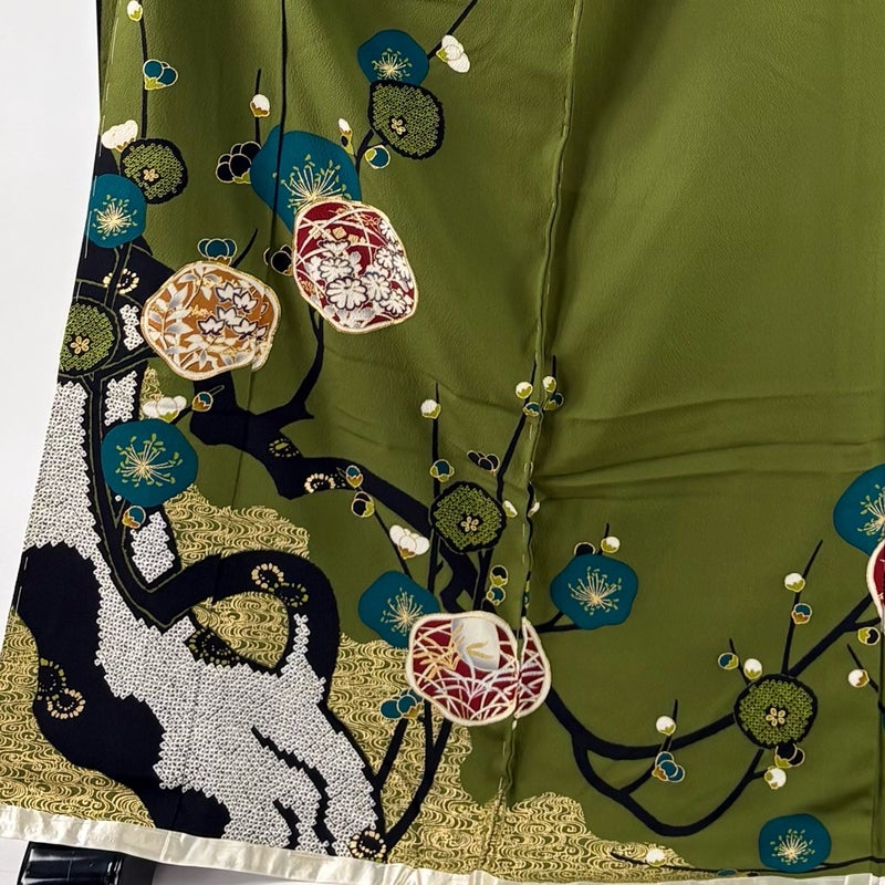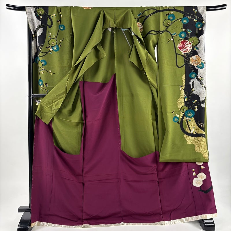 【振袖】 緑系 よもぎ色 秀品 B 約170cm~約179cm 裄丈67cm-68cm 袖丈91cm以上 7990-9980 二万以下
