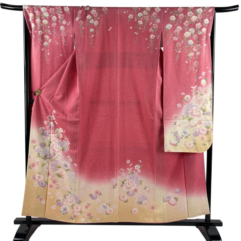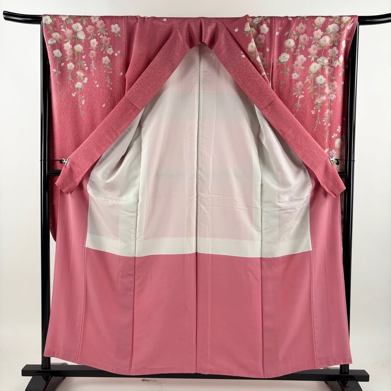 【振袖】 赤系 ピンク 秀品 B 約150cm~約159cm 裄丈67cm-68cm (M)size 袖丈91cm以上 7990-9980 二万以下