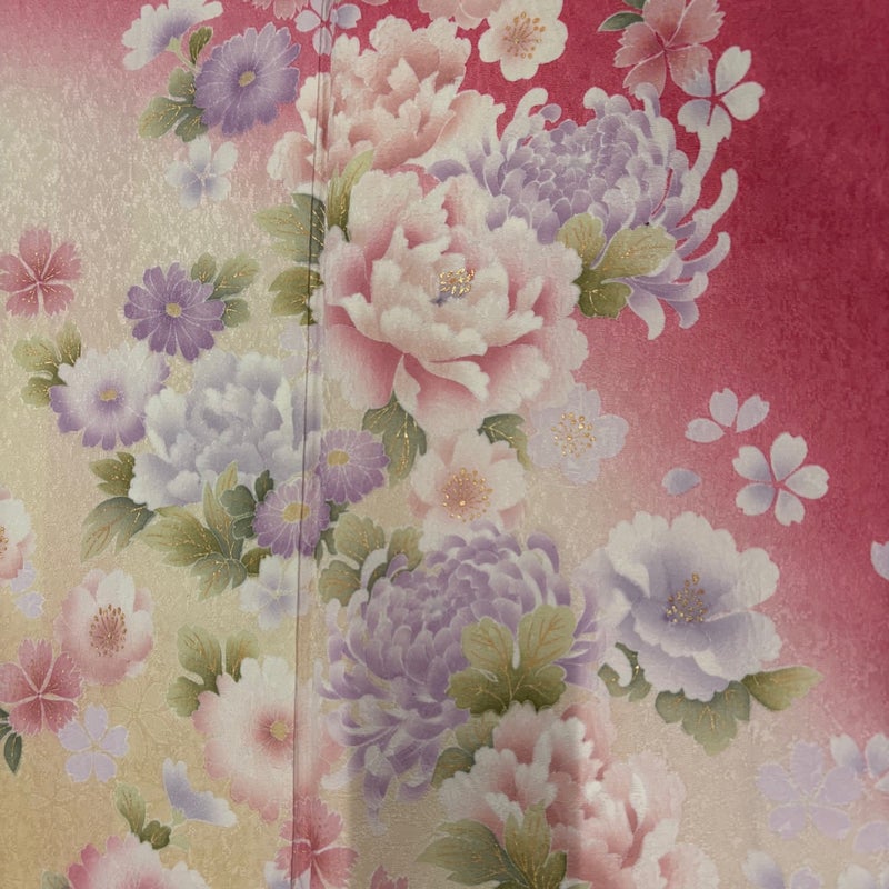 【着物ランク】秀品 【素材】正絹 【身丈】約157cm 【裄丈】約67cm 【袖丈】約100.5cm 【袖幅】約36cm 【前幅】約22cm 【後幅】約29cm 【サイズ】M 【着物仕立て】袷 【着用時期】10~5月 【状態ランク】ランクB 【着物着用シーン】成人式、謝恩会