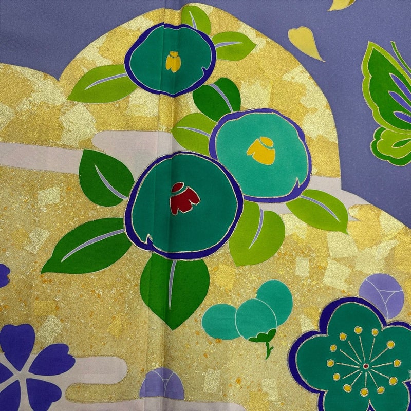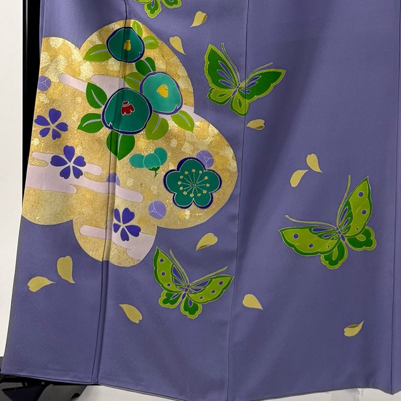 【振袖】 紫系 青紫 秀品 C 約160cm~約169cm 裄丈63cm-64cm (M)size 袖丈91cm以上 7990-9980 二万以下