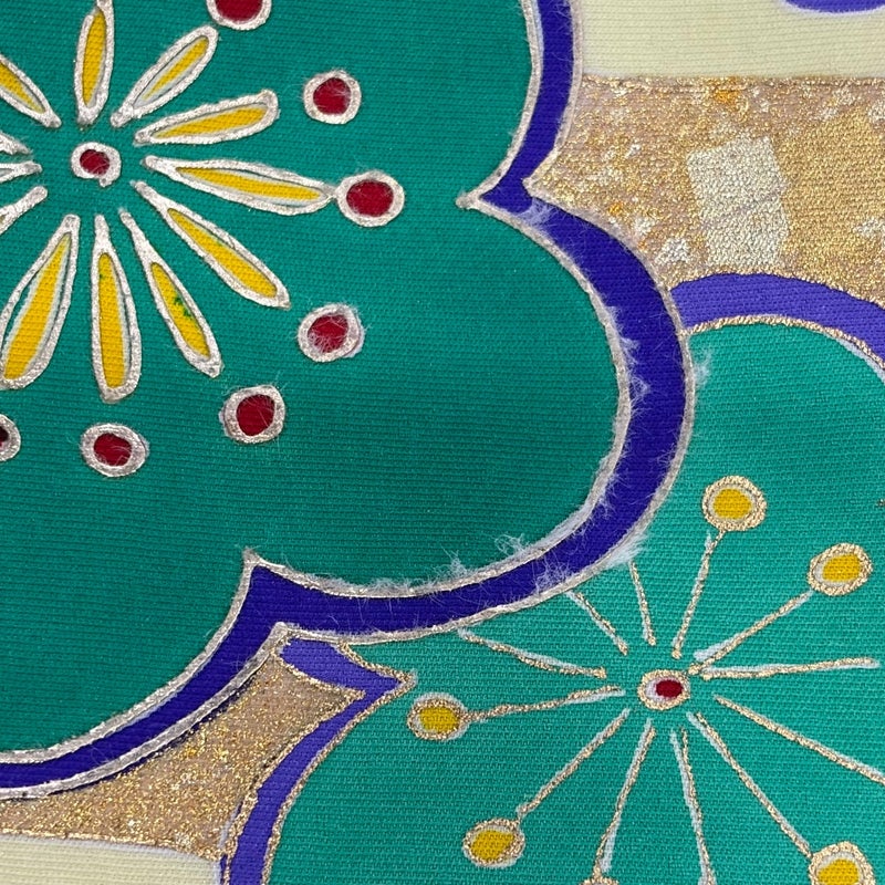 【着物ランク】秀品 【素材】正絹 【身丈】約162.5cm 【裄丈】約64.5cm 【袖丈】約112.5cm 【袖幅】約33.5cm 【前幅】約24.5cm 【後幅】約30cm 【サイズ】M 【着物仕立て】袷 【着用時期】10~5月 【状態ランク】ランクC 【着物着用シーン】成人式、謝恩会