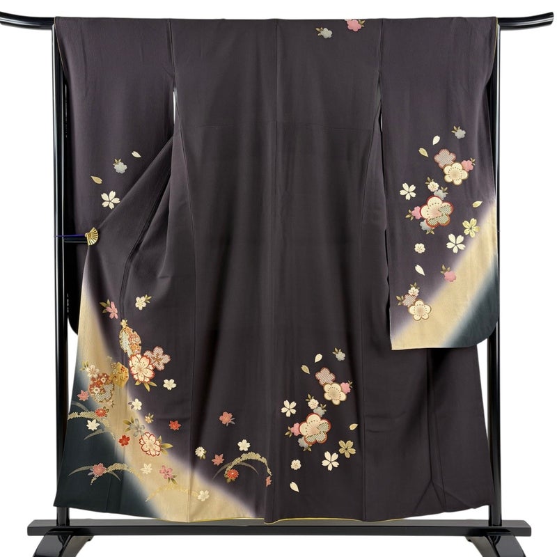【振袖】 茶系 茶紫 秀品 A 約150cm~約159cm 裄丈66cm (M)size 袖丈91cm以上 9990-29990 美品 二万以下