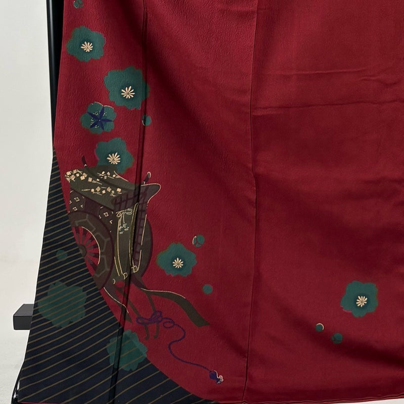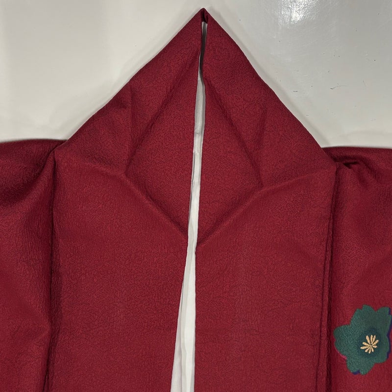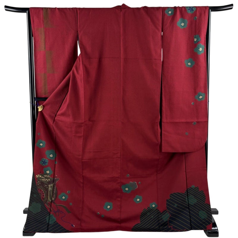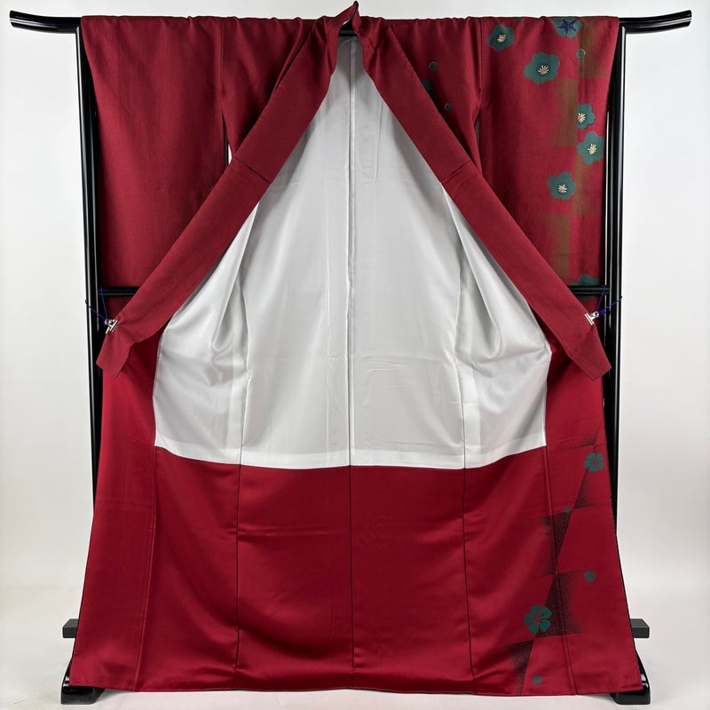 【振袖】 赤系 えんじ色 秀品 A 約170cm~約179cm 裄丈66cm (M)size 袖丈91cm以上 9990-29990 美品 二万以下