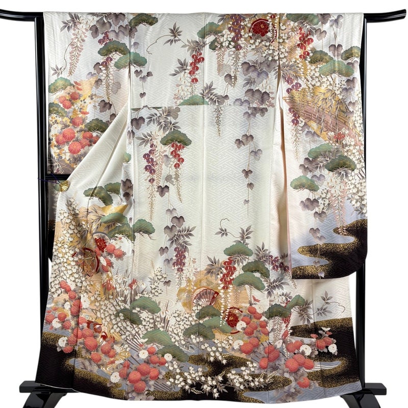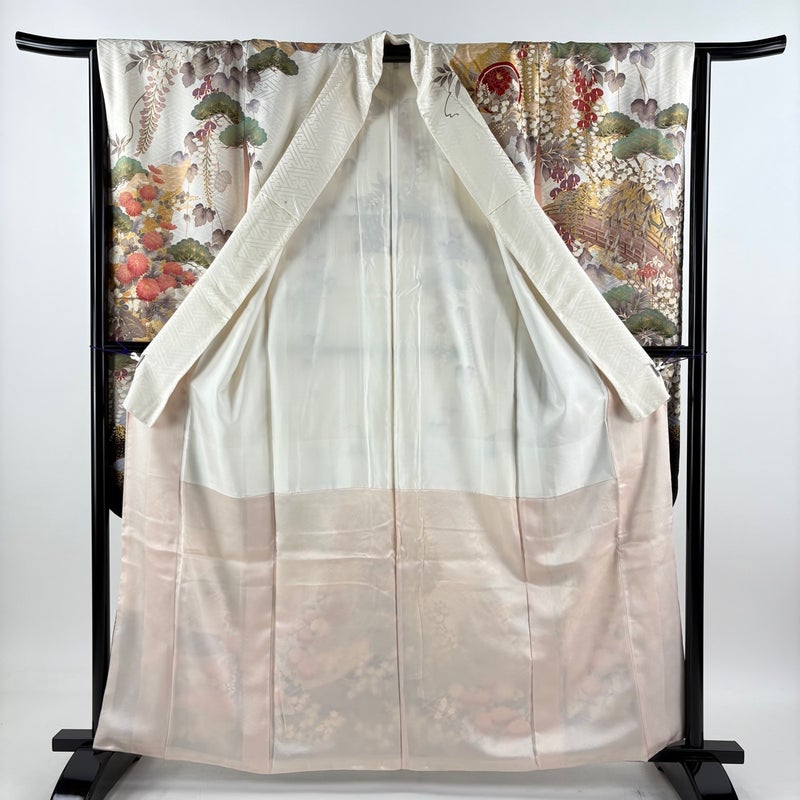 【振袖】 白系 クリーム 秀品 B 約160cm~約169cm 裄丈63cm-64cm (M)size 袖丈91cm以上 7990-9980 二万以下