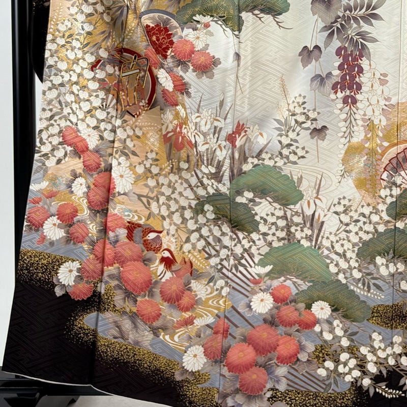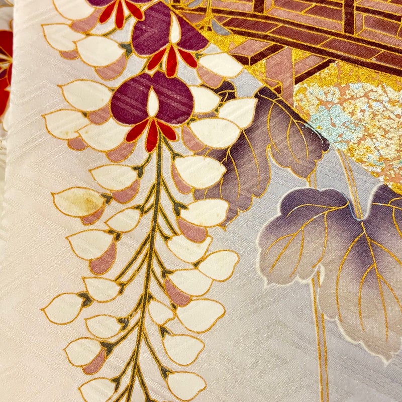 【着物ランク】秀品 【素材】正絹 【身丈】約160cm 【裄丈】約64cm 【袖丈】約107.5cm 【袖幅】約34cm 【前幅】約24cm 【後幅】約30cm 【サイズ】M 【着物仕立て】袷 【着用時期】10~5月 【状態ランク】ランクB 【着物着用シーン】成人式、謝恩会