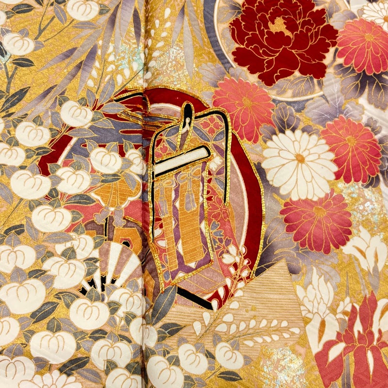 未婚女性の第一礼装としてお使いいただける振袖でございます。 お好みの帯や小物と合わせて晴れの日に相応しい華やかな装いにいかがでしょうか。 ※身丈・裄丈の縫込みの長さは測っておりません。 表地所々にヤケ、後身頃の背中付近と右衿と左前袖にシミ、衿周りや両袖口中に汚れ、左胸にシワがございます。 八掛に点シミがございます。 リユース品としては良い状態で、まだまだご活用頂けると思われます。 ※なお、厳しく商品の状態確認を行っておりますが、記載の汚れ以外にも見落とし箇所がある可能性がある旨ご了承いただけますと幸いです。 沢山の商品の中からご覧いただき誠にありがとうございます。